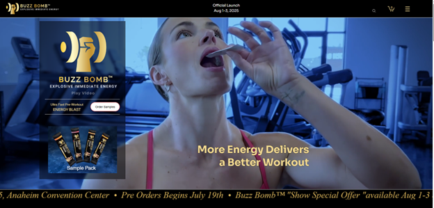 Higginson added, "With BUZZ BOMB™, we're raising the bar for ease of use, performance and value in the multi-billion-dollar caffeine category. We focused on creating a formula that is fast-absorbing and built for athletes, fitness enthusiasts and consumers who demand clean, effective fuel without unnecessary fillers or compromise. With online sales commencing August 1, we are now focused on increasing our marketing, expanding our third-party manufacturing capabilities, and preparing for further discussions with potential licensing partners in the nutritional and supplement space that can help us drive increased consumer awareness and accelerate our revenue potential for BUZZ BOMB™."