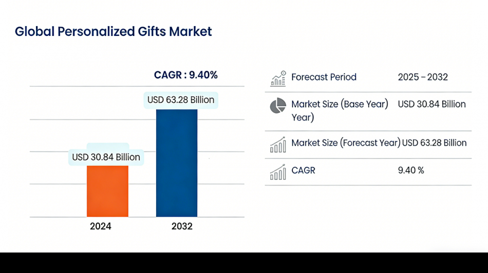 According to data from Data Bridge Market Research, the global personalized and commemorative gifts market reached USD 30 billion in 2024-2025 and is projected to grow at a CAGR of 9.4% through 2032.