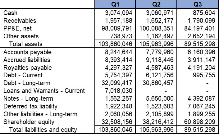 Balance Sheet: Below is a condensed version of the balance sheet that is included in the 10-Q filing, followed by discussions on certain results and changes from prior quarters.