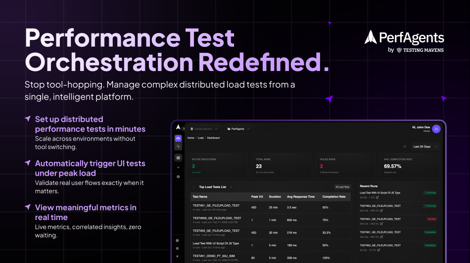 PISCATAWAY, NJ / ACCESS Newswire / February 23, 2026 / Testing Mavens today announced the launch of the rebranded PerfAgents platform, introducing a next‑generation performance test orchestration solution designed to revolutionize the way organizations setup, execute, and analyze performance tests at scale.
