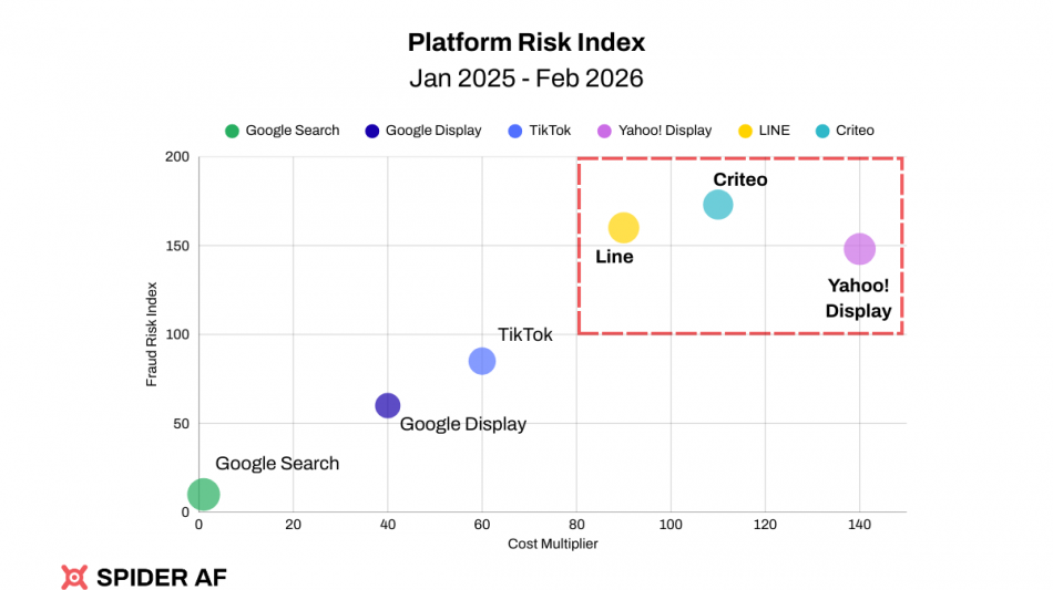Optimization algorithms naturally gravitate toward Yahoo! Display because of its unrivaled volume and reach across Japan. However, this scale masks a significant structural risk. As documented in Spider AF's 2025 Ad Fraud White Paper report, these platforms often fall into a "dangerous feedback loop."