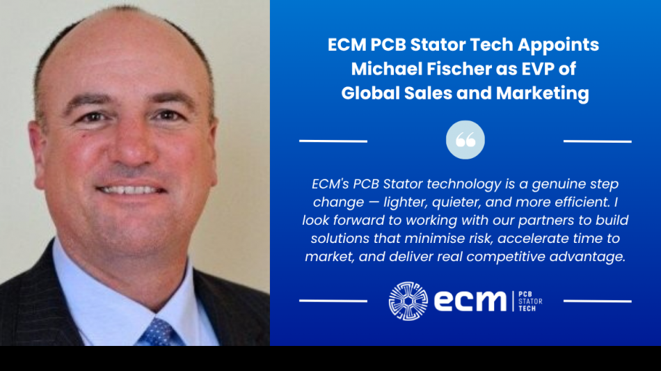 NEEDHAM, MA / ACCESS Newswire / April 7, 2026 / ECM PCB Stator Tech, a U.S. leader in next-generation electric motor design innovation, today announced the appointment of Michael Fischer as Executive Vice President of Global Sales and Marketing. Fischer brings four decades of senior commercial leadership to ECM, and joins at a pivotal moment as the company accelerates the global adoption of its industry-changing PrintStator design platform and patented PCB Stator motor technology.