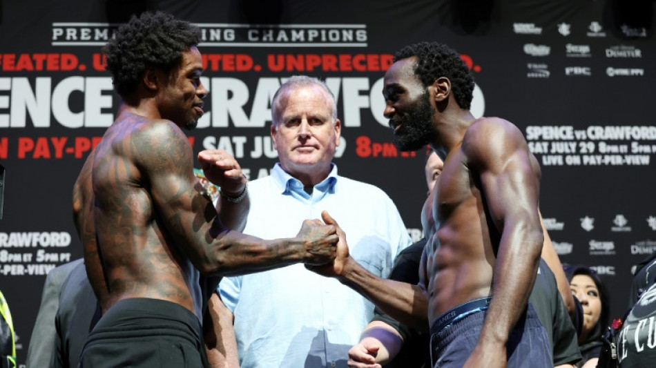 Unbeaten Americans Errol Spence and Terence Crawford made weight Friday for their long awaited and highly anticipated welterweight world title unification showdown in Las Vegas.
