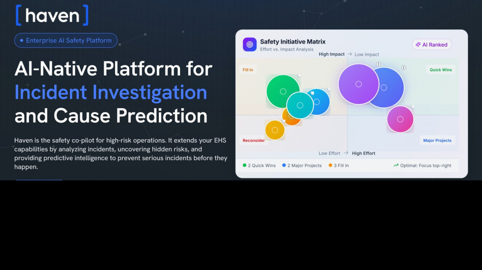 The company's platform acts as an AI copilot for safety teams. It guides structured witness statements, automatically gathers evidence, synthesizes timelines, identifies root causes, and recommends corrective actions grounded in both regulatory standards and an organization's historical data. Haven delivers measurable impact from day one by driving rapid gains in investigation efficiency, quality, and consistency; reducing repeat incidents; and enabling long-term improvements in risk exposure and serious incident reduction. Over time, the system develops institutional memory, enabling predictive insights and earlier intervention.