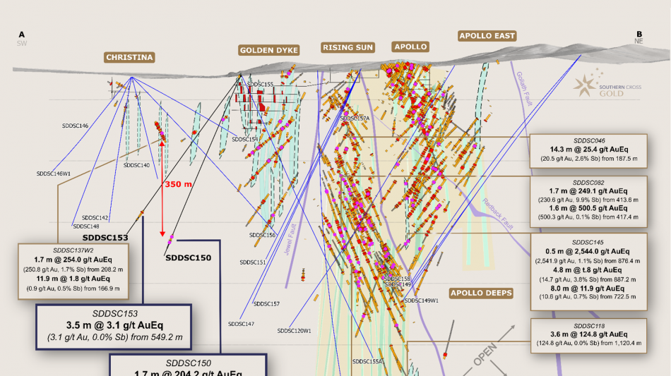 VANCOUVER, BC AND MELBOURNE, AUSTRALIA / ACCESS Newswire / January 29, 2025 / Southern Cross Gold Consolidated Ltd ("SXGC", "SX2" or the "Company") (TSXV:SXGC)(ASX:SX2) announces significant results from drill holes SDDSC150 and SDDSC153, the deepest holes at the Christina prospect, part of the 100%-owned Sunday Creek Gold-Antimony project in Victoria.