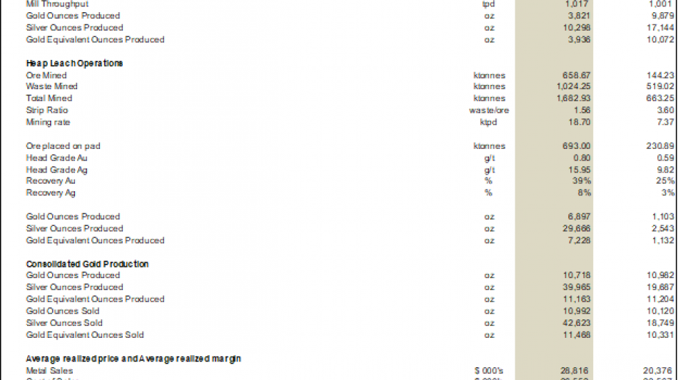 The Company produced 11,163 gold equivalent ounces ("GEO") during the three months ended March 31, 2025, as compared to 11,204 GEO for the three months ended March 31, 2024. Production is consistent with the prior year period. In the period ended March 31, 2025, heap leach production was significantly higher compared to prior year due to 36% higher gold head grade, 53% higher recovery and 462,000 additional tonnes placed on the pad. This was offset by a 6,136 ounce decrease in production from the CIL operation as the Company's focus moved towards heap leach operations in 2025 and the plant only processed low grade ore in Q1 2025.