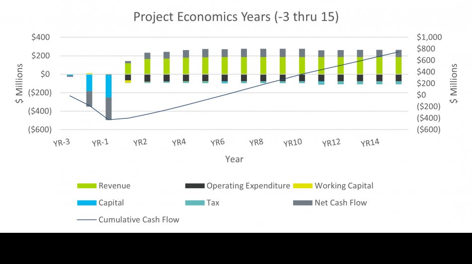 As with the capital and operating forecasts, the economic analysis is inherently a forward-looking exercise. These estimates rely upon a range of assumptions and forecasts that are subject to change depending upon macroeconomic conditions, operating strategy and new data collected through operation of the SSF. Table 6 summarizes the economic results and Figure 5 highlights project cashflows during the first 15 years.