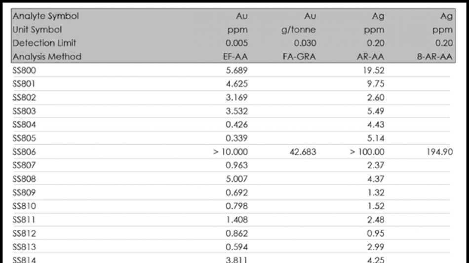 SS806: 42.683 g/t Au
