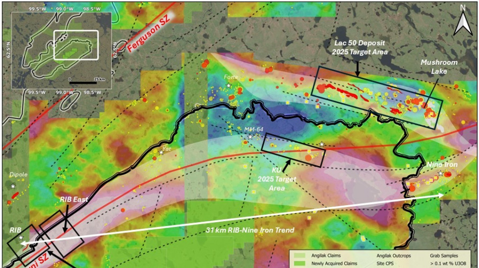 Results represent the third new discovery of uranium mineralization - beyond the Lac 50 Deposit Trend - during the 2025 Angilak Exploration Program, within the Angikuni Basin along the 31 km RIB-Nine Iron Trend (Figure 1);