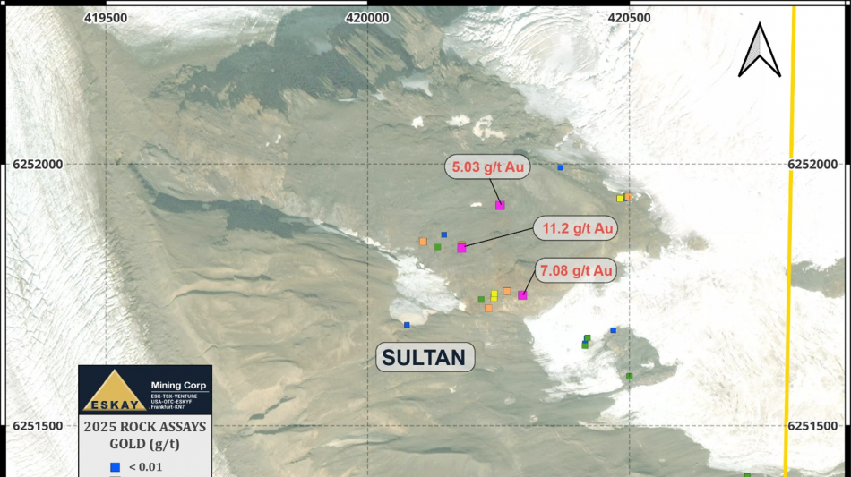 Figure 4. 2025 rock sample assays for gold from Sultan.