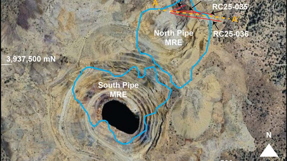 The exploration program has successfully intercepted mineralisation extending beyond the currently defined resource boundary. Four RC drillholes (RC25-034 through RC25-037), oriented to the northeast, confirmed that the gold-bearing breccia pipe remains open in that direction. The results not only confirmed existing grades but suggest localised grade improvements.