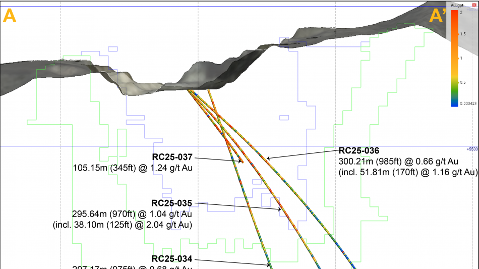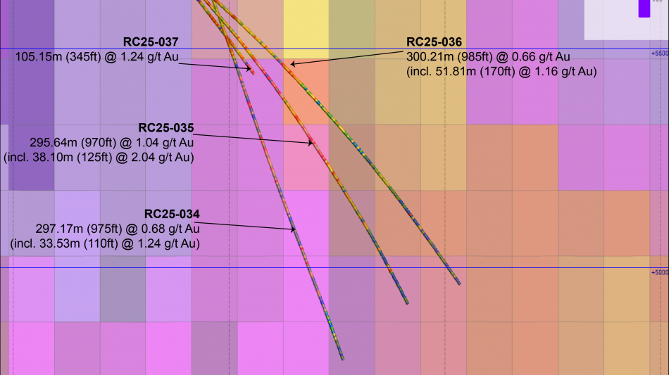 RC25-035 returned 295.64m (970ft) @ 1.04 g/t Au from surface