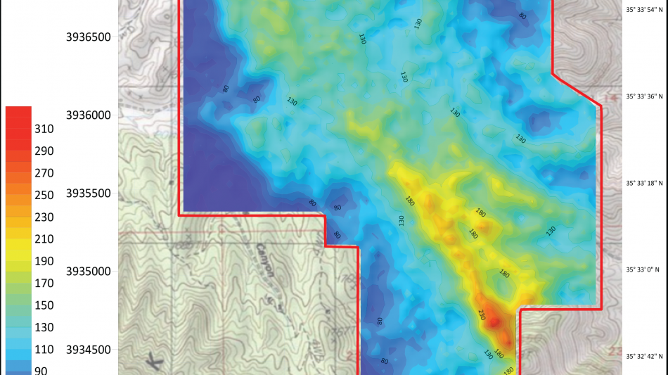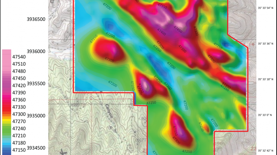 A magnetic and radiometric survey at 50m line spacing covering approximately 8.6 km² delivering high-resolution magnetic and radiometric datasets.