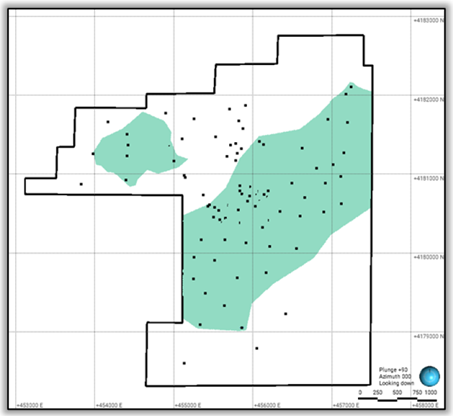 Figure 1 from the SRK report shows the high density of drill holes used in the MRE along with the indicated resource extents.