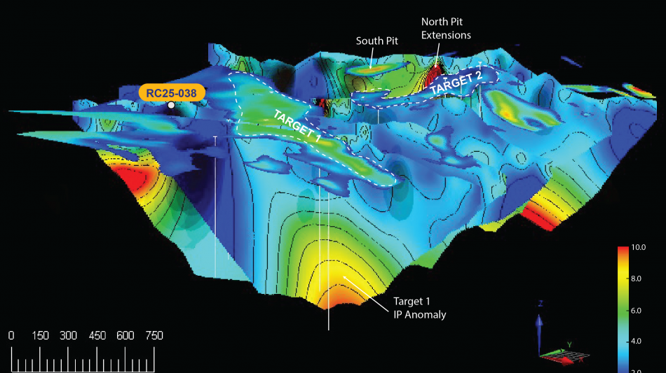 Importantly, the geochemical results from drill hole RC25-038 (see further in this announcement) and historical surface sampling have also been brought into this combined analysis, allowing the geophysical models to be ground-truthed against real geochemistry.